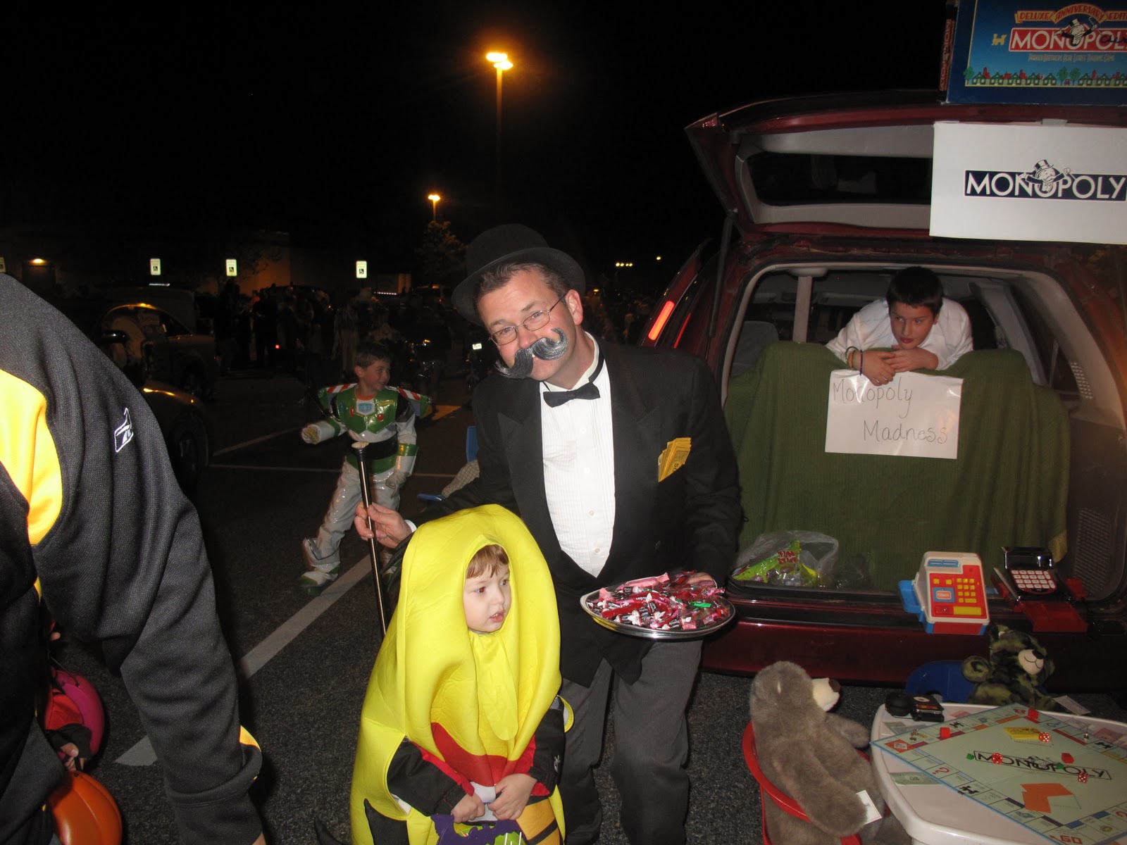 But this year we didn't have a wedding to go to, so we went to Trunk or Treat at our church. We originally planned on doing a trunk when it was going to be on Saturday the 29th. But it ended up sleeting/snowing that day, so they postponed it to Monday night (Halloween). Since I work full time we couldn't do a trunk and we were disappointed at first, but we had fun just attending.